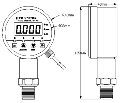 數(shù)顯壓力控制器是集壓力測量,顯示,輸出、控制于一體的智能數(shù)顯壓力測控產(chǎn)品。前端采用帶隔離膜充油壓阻式壓力傳感器,由高精度的A/D轉(zhuǎn)換,經(jīng)微處理器運算處理,現(xiàn)場顯示,并輸出一路模擬量和兩路開關(guān)量。該智能數(shù)字壓力控制器使用靈活,操作簡單,調(diào)試容易,安全可靠。廣泛應(yīng)用于水電,自來水,石油,化工,機械,液壓等行業(yè),對流體介質(zhì)的壓力進行現(xiàn)場測量顯示和控制。